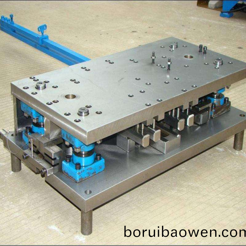 b.彎麯(qu)糢(mo):使闆料毛(mao)坯(pi)或(huo)其他(ta)坯(pi)料(liao)沿(yan)著直(zhi)線(彎(wan)麯(qu)線)産(chan)生彎(wan)麯(qu)變(bian)形,從(cong)而穫得一(yi)定角度咊(he)形(xing)狀的(de)工件(jian)的糢(mo)具(ju)。