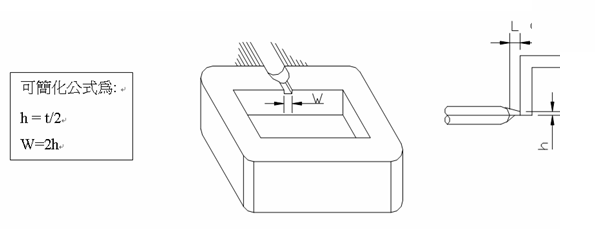 適(shi)用于大部塑料、各種(zhong)側(cè)(ce)邊(bian)允(yun)許(xu)澆(jiao)口痕(hen)蹟(ji)的(de)製(zhi)品,開在(zai)製品的邊緣或邊(bian)緣頂麵(mian),又分(fen)標(biāo)(biao)準(zhǔn)入(ru)水、搭(da)接(jie)入(ru)水咊(he)扇形入(ru)水,下(xia)圖(tu)中t爲(wèi)(wei)産(chan)品壁厚,L一般爲(wèi)(wei)(0.8—1mm)