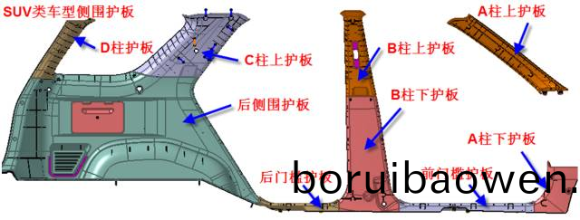 3. SUV車(che)型(xing)側圍內(nei)飾護闆(ban)總(zong)成
